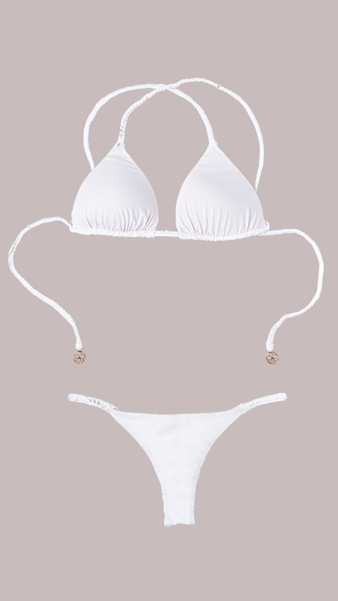 This MOCA Bikini Triangle Top is the perfect blend of feminine and sexy, with adjustable braided straps for maximum comfort and support. The elegant white color will make you feel confident and beautiful all season long.